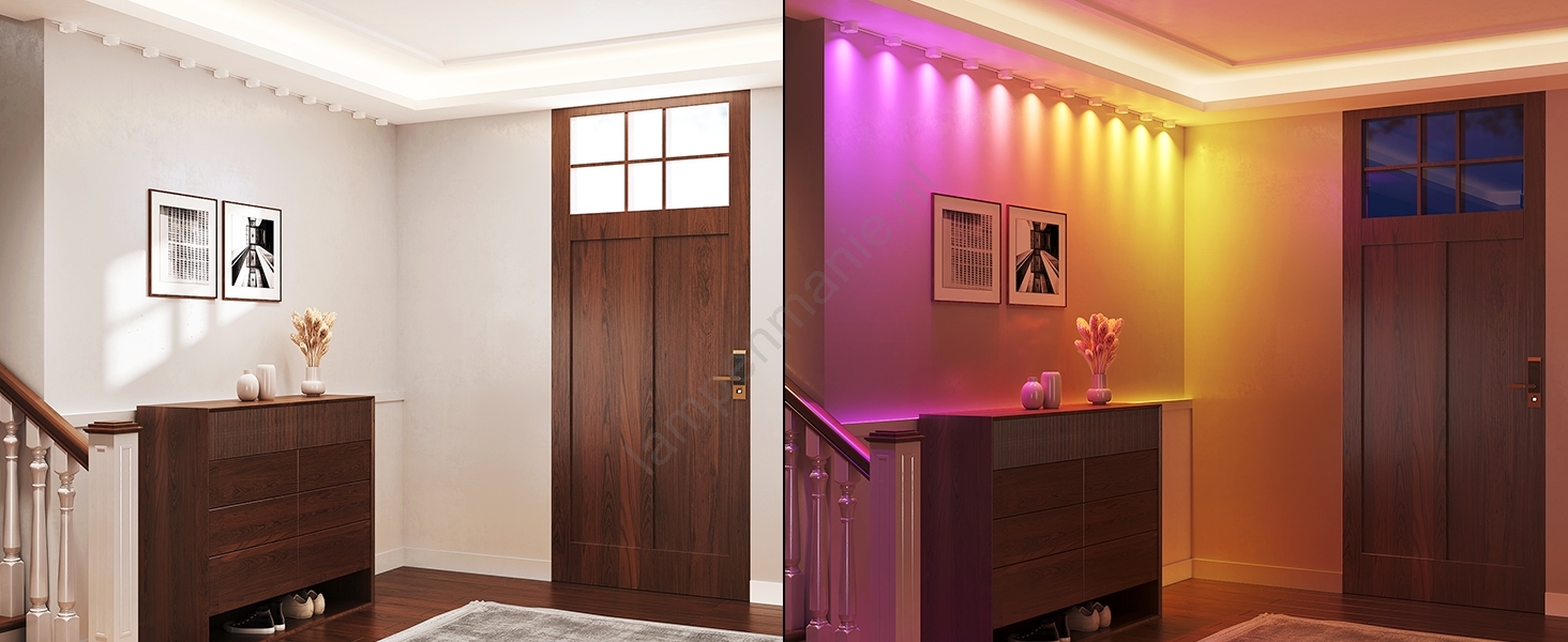 • De lampen kunnen ook langs gebogen muren worden geleid en zijn eenvoudig rond hoeken te plaatsen.