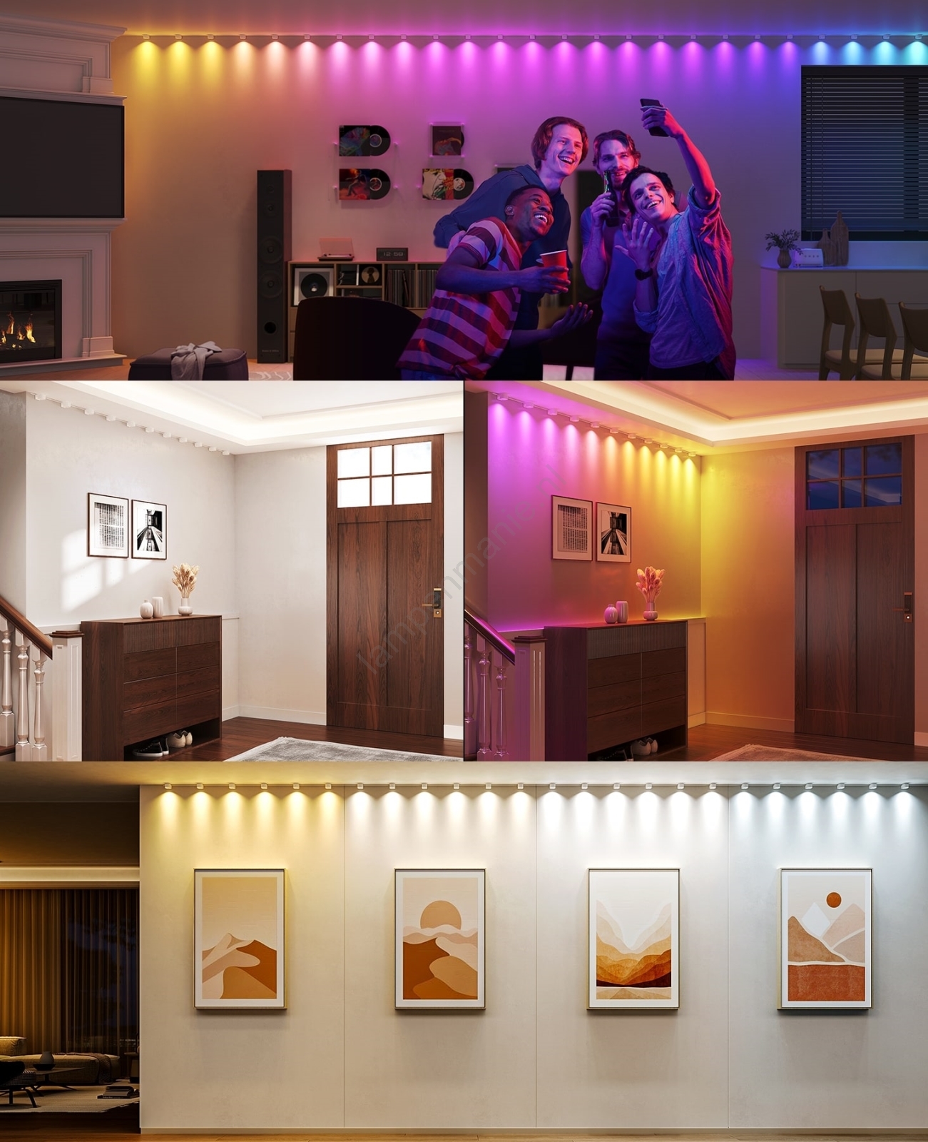 • Dankzij de RGBIC-technologie kan elke spot afzonderlijk worden aangestuurd, met keuze uit RGB-tinten, kleurtemperatuur van wit licht en helderheid.