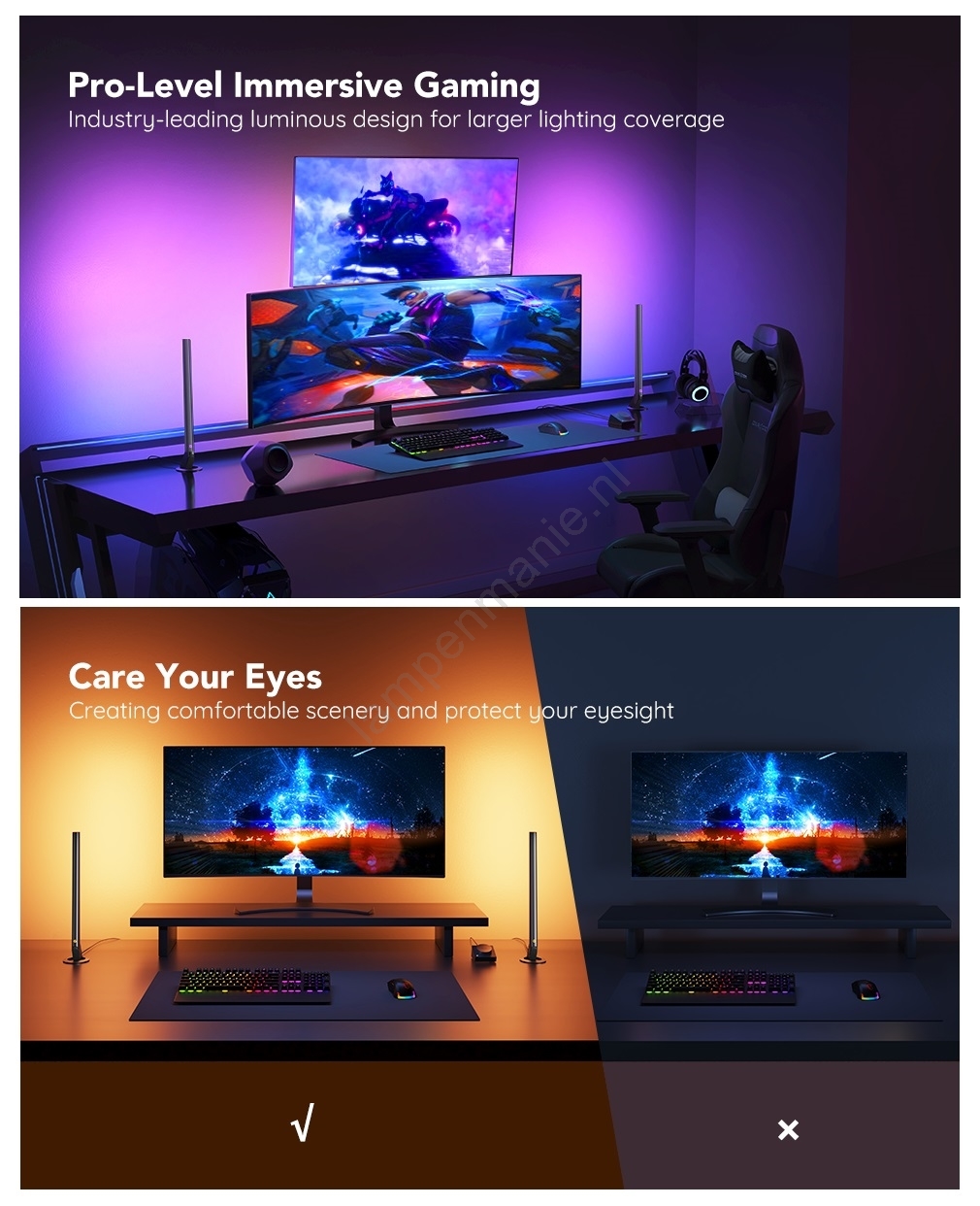 • Moderne lichtpanelen voor gamers en filmliefhebbers – creëren een adembenemende sfeer naast de tv of monitor.