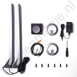 • Inhoud van de verpakking: 2× lichtpaneel, 1x afstandsbediening Smart Dual, 1× netadapter, 1x 3,5 mm verbindingskabel.