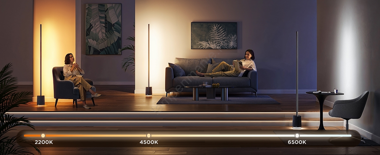 • Geniet van kleurverlopen, warme en koele witte tinten in het bereik van 2200K tot 6500K.