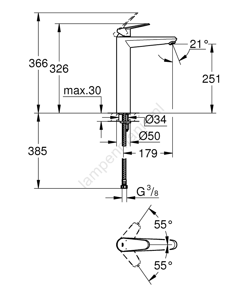 • Elegante XL-wastafelmengkraan met hendel voor vrijstaande wastafels.