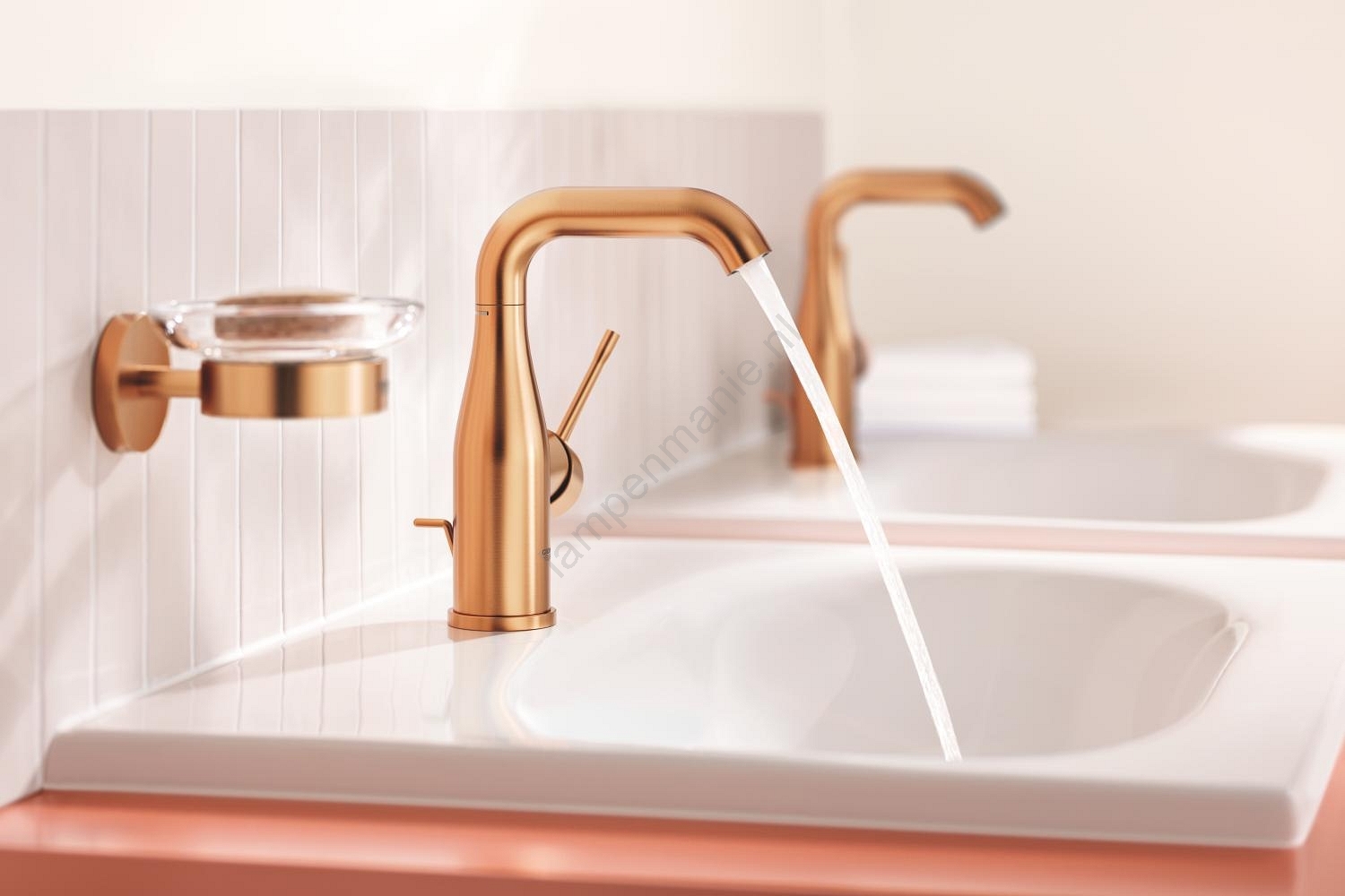 • Elegante ééngreeps wastafelkraan GROHE Essence in uitvoering Brushed Warm Sunset.