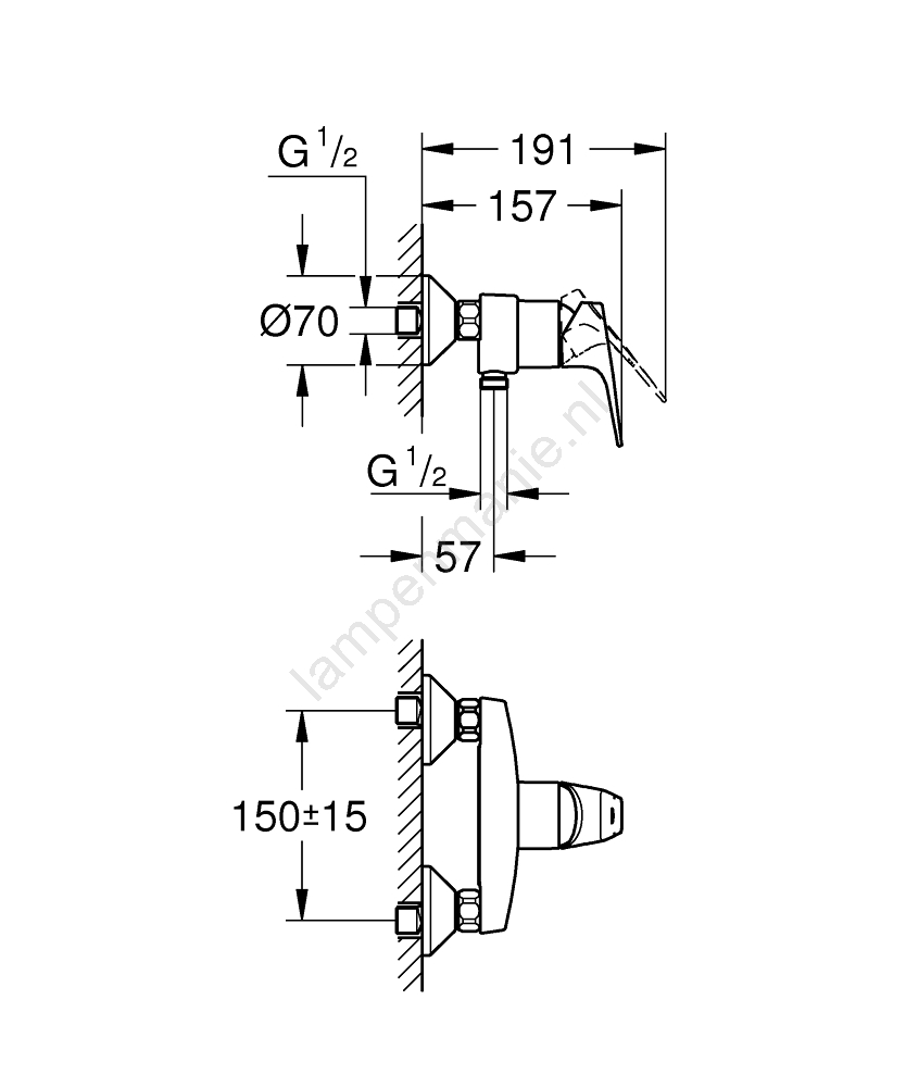 • Moderne eengreeps-douchekraan voor wandmontage.