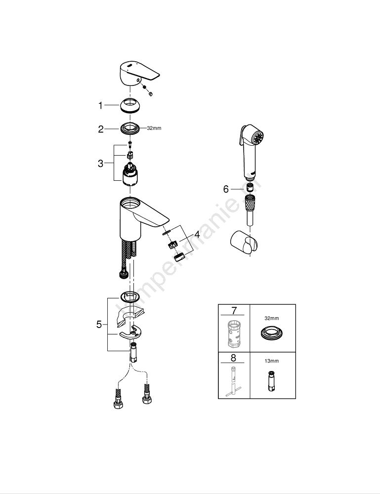 • Ideale oplossing voor de combinatie van wastafelmengkraan en bidetdouche in één product.