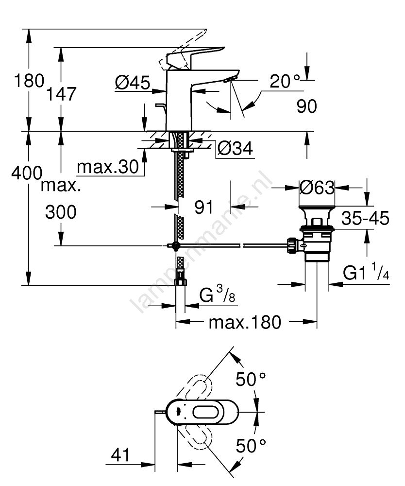 • GROHE Water Saving-technologie vermindert het waterverbruik tot 5 l/min bij 3 bar.