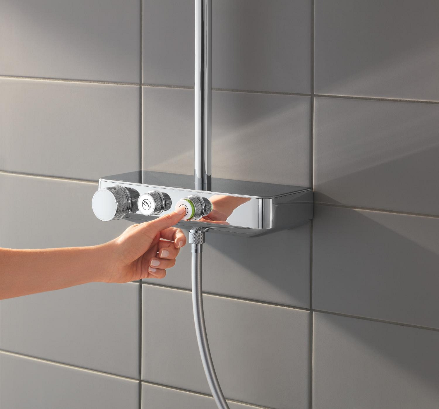 • De innovatieve GROHE SmartControl-technologie maakt het eenvoudig te schakelen tussen hoofddouche en handdouche en biedt nauwkeurige regeling van het waterdebiet.