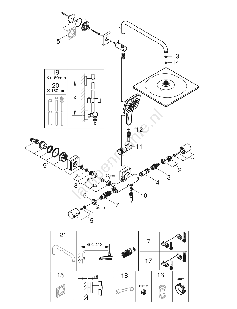 • Wandthermostaatkraan met Aquadimmer-functie voor eenvoudig omschakelen tussen uitgangen.