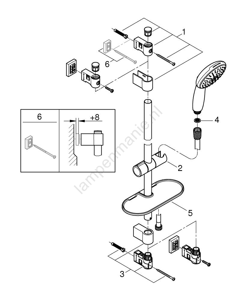 • Montage mogelijk met schroeven (inbegrepen) of door te lijmen (lijm GROHE QuickGlue S 41 247 000 wordt apart verkocht; 2 stuks nodig).