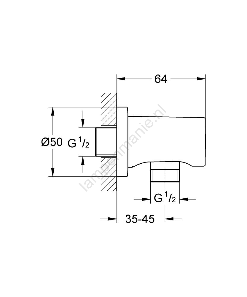 • Wandbocht GROHE Rainshower met buitendraad 1/2" voor eenvoudige installatie.