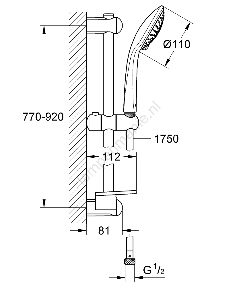 • Douchestang van 900 mm voor comfortabele hoogte-instelling.