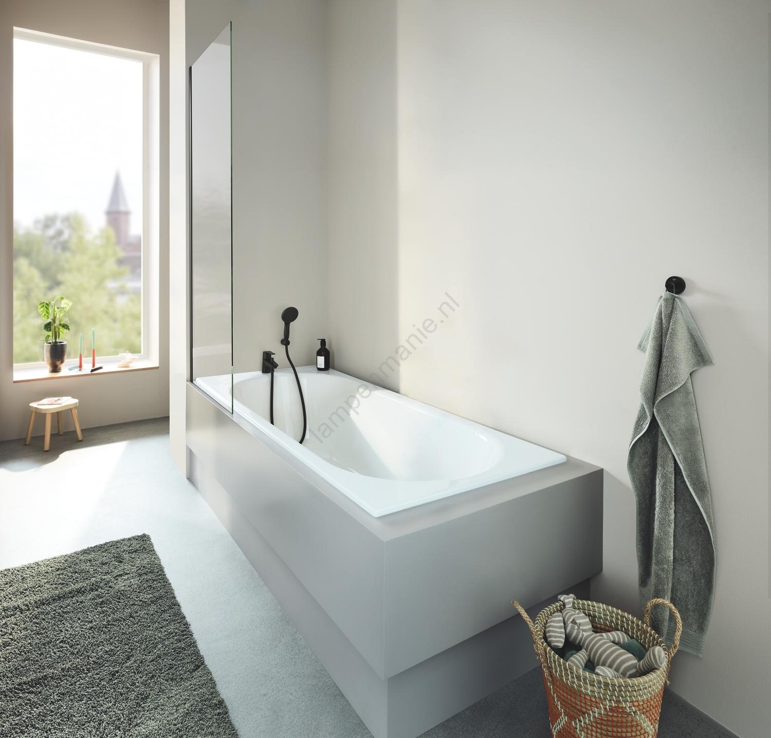 • zwarte afwerking voor een moderne uitstraling van de badkamer.