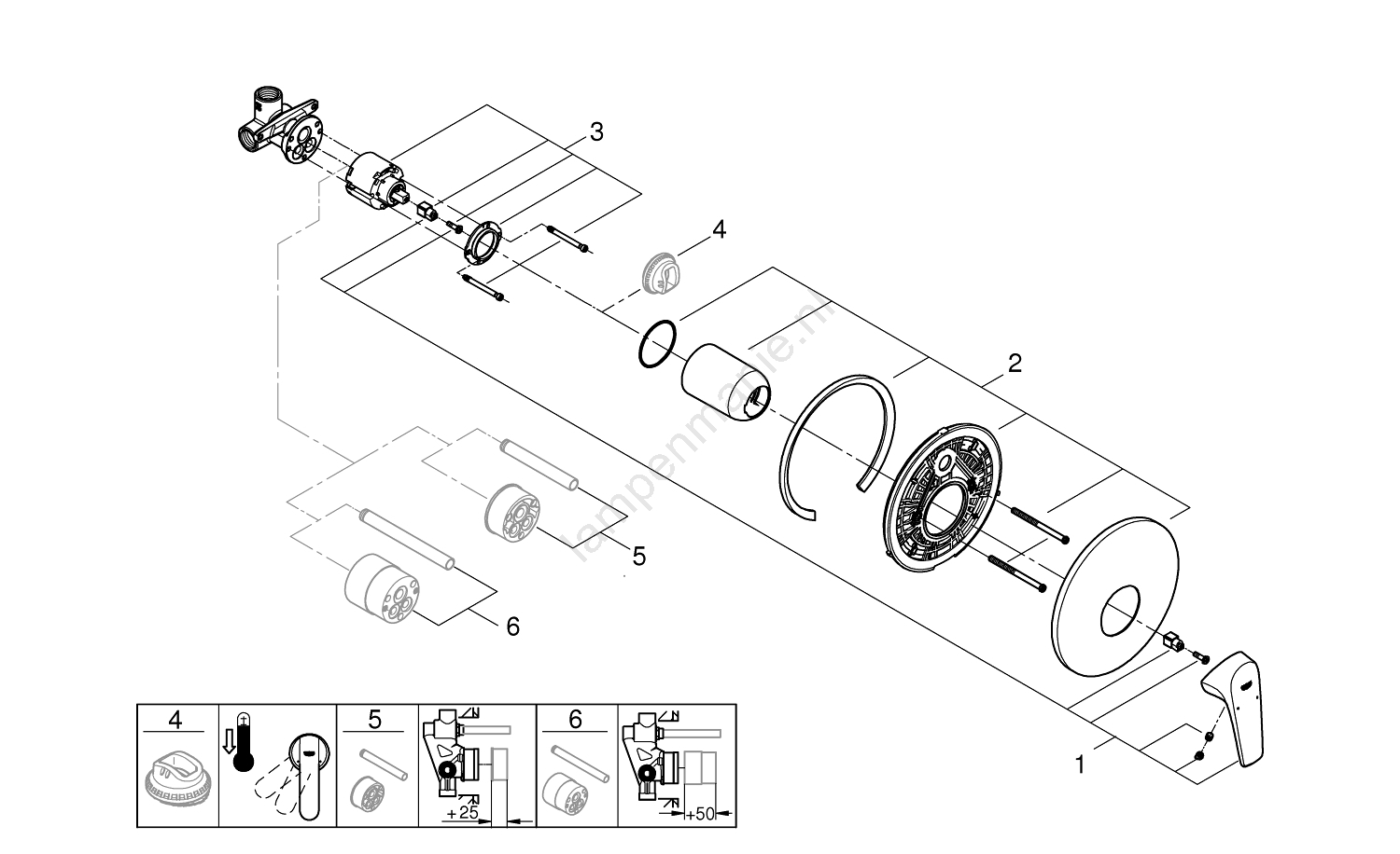 • GROHE Long-Life 46 mm keramische cartridge voor soepele regeling van temperatuur en watertoevoer.