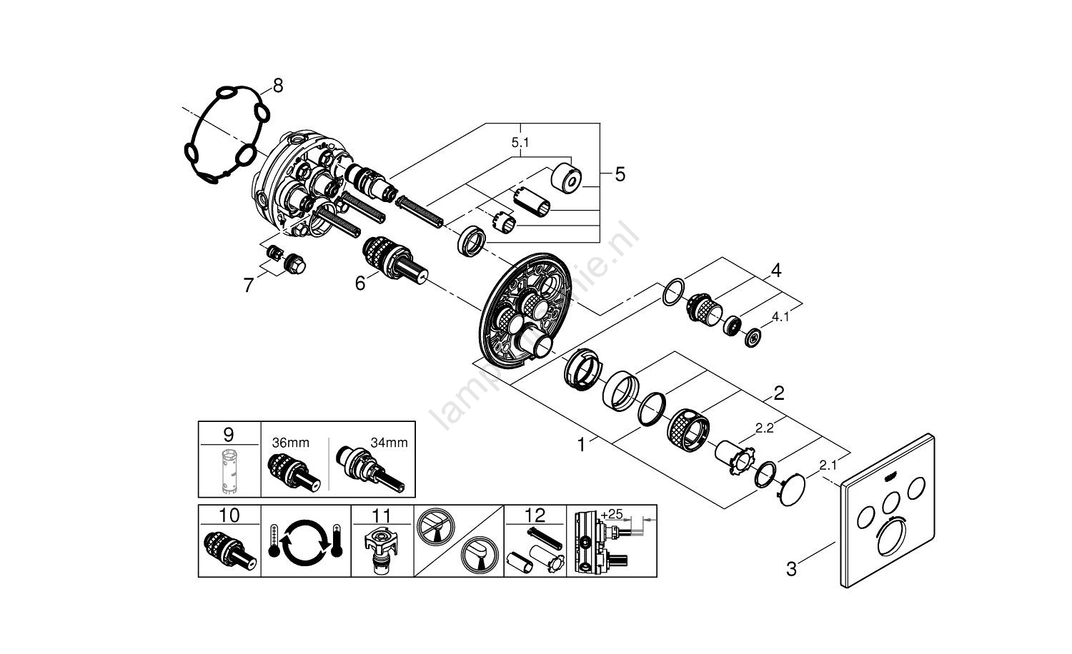 • Compacte GROHE TurboStat-cartridge met waxthermo-element voor snelle en nauwkeurige temperatuurregeling.