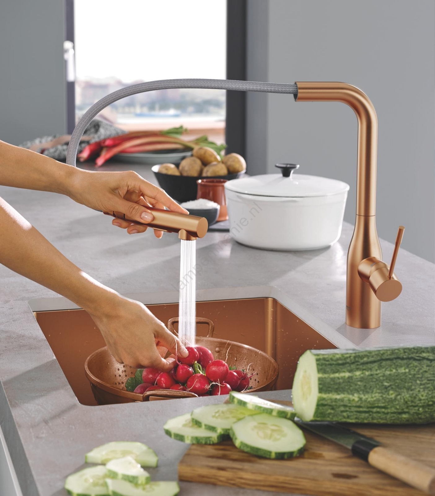 • Modern design in de Brushed Warm Sunset-afwerking geeft uw keuken een elegante uitstraling.