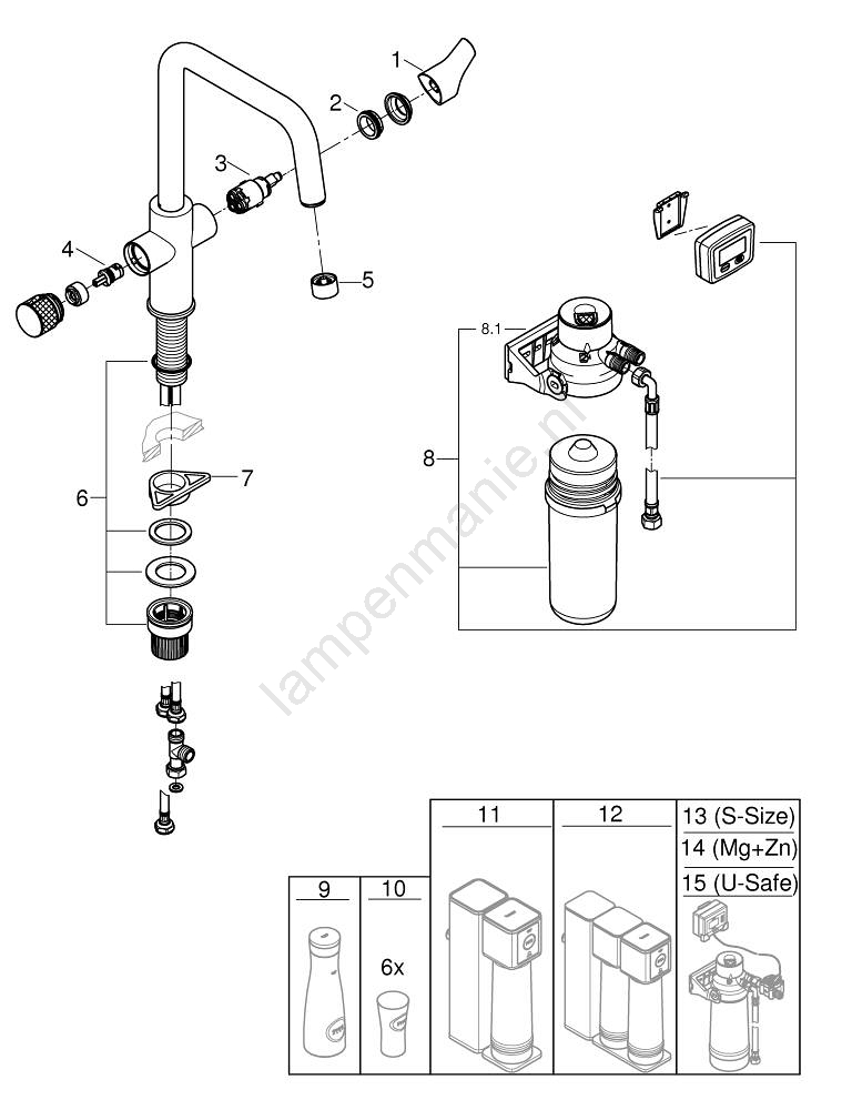 • Het GROHE Blue filtersysteem met actieve kool is ideaal voor gebieden met zacht water (onder 9° dKH).