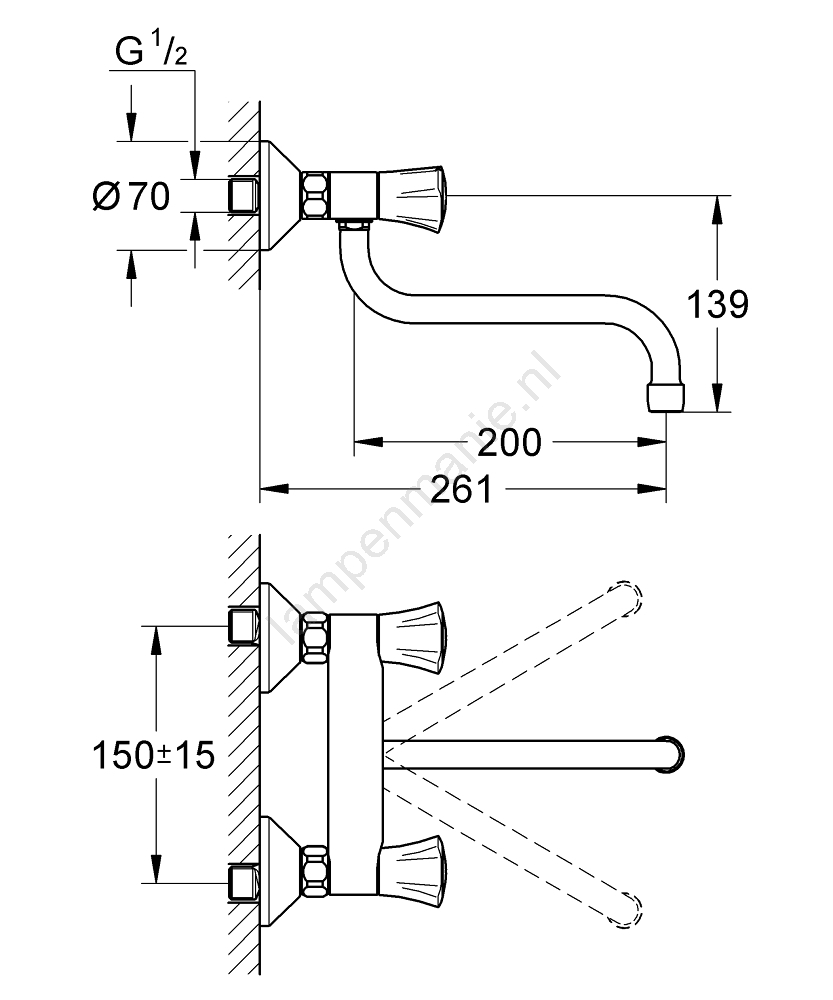 • Uitlooplengte 200 mm voor comfortabel gebruik.