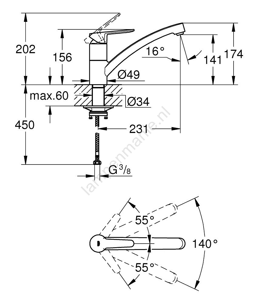 • Draaibereik van 140° vergemakkelijkt het bedienen tijdens het afwassen.