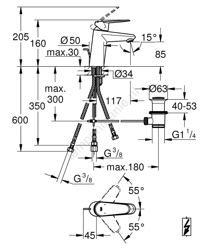 • Installatiesysteem GROHE FastFixation met centreerhulp voor snelle en nauwkeurige montage.