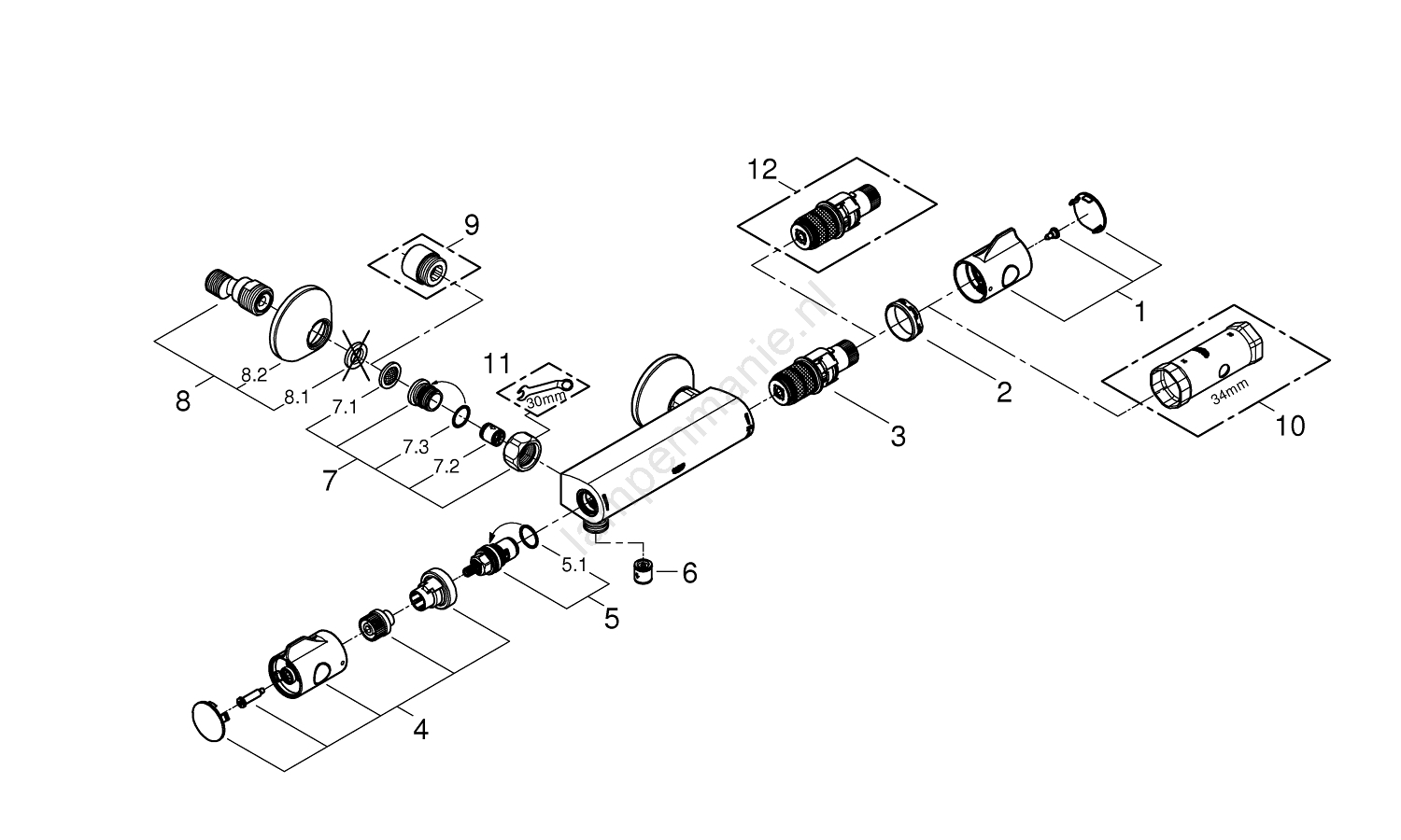 GROHE 34558000 - Thermostatische douchekraan GROHTHERM 800 DN 15 glanzend chroom