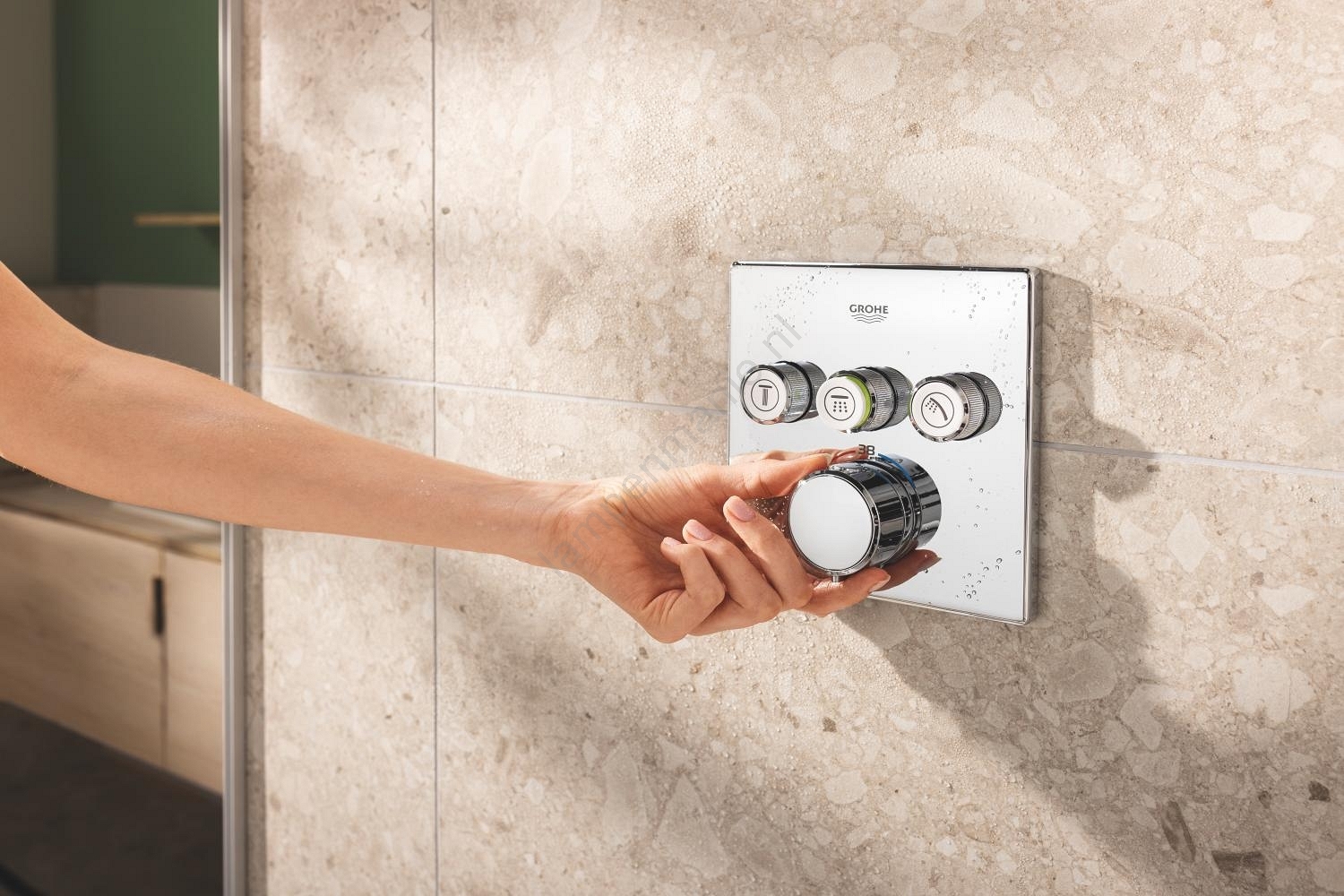 • Thermostaatkraan Precision SmartControl met drie ventielen waarmee meerdere uitgangen gelijktijdig bediend kunnen worden.