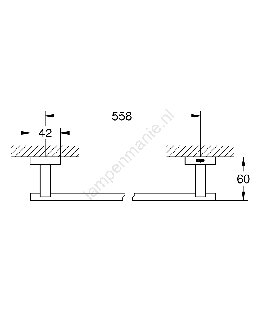 • Totale lengte 600 mm, bruikbare lengte 558 mm voor comfortabel ophangen van handdoeken.