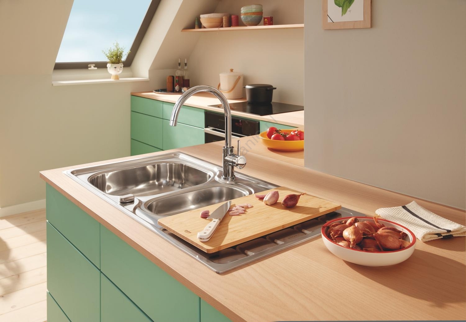 • Het elegante design vult de uitstraling van uw keuken aan en past bij GROHE-spoelbakken.