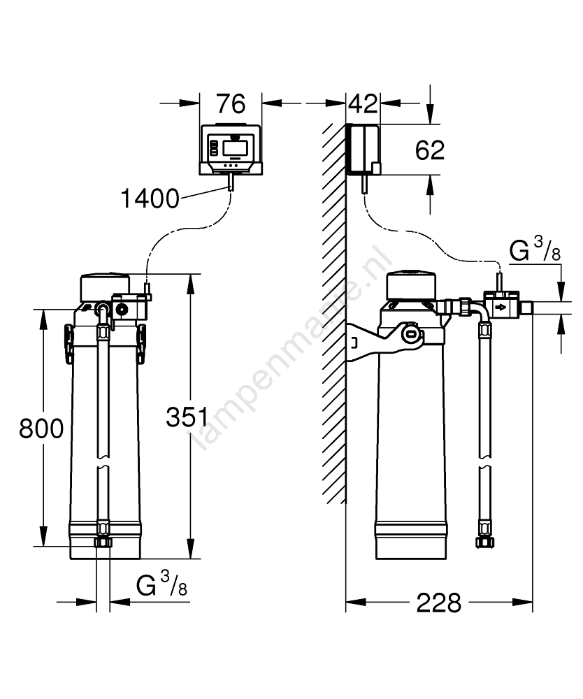 • De filtercapaciteit is 400 liter bij een waterhardheid van 17°dGH.