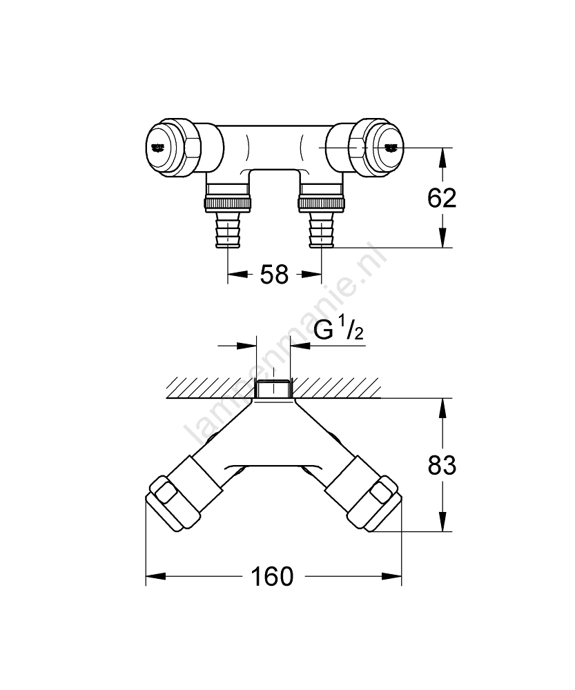 GROHE 41022000 - Dubbel ventiel EGGEMANN DN 15 glanzend chroom