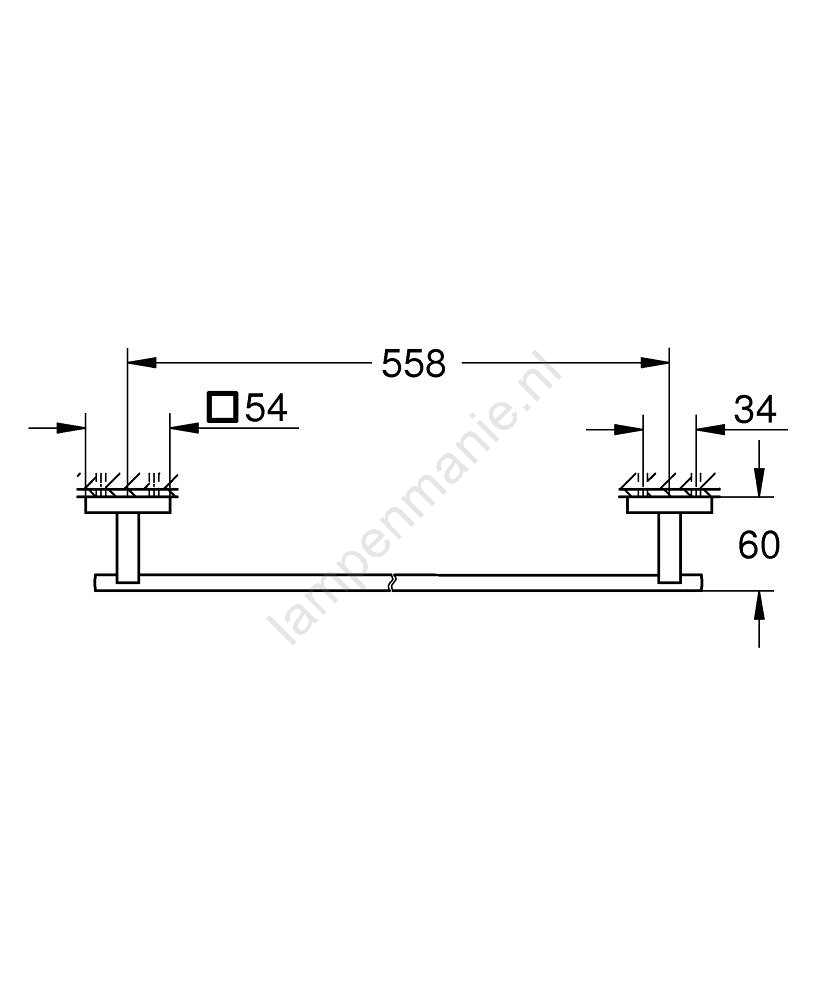 • Lengte 600 mm met een functionele lengte van 558 mm voor comfortabel ophangen van handdoeken.