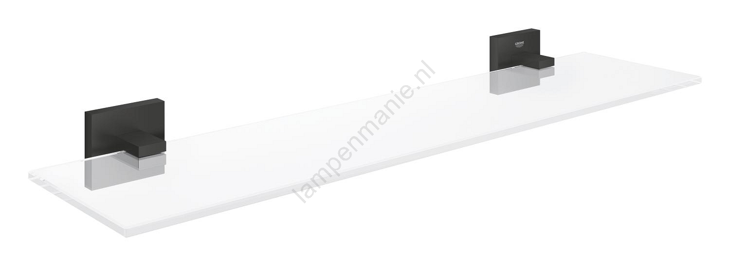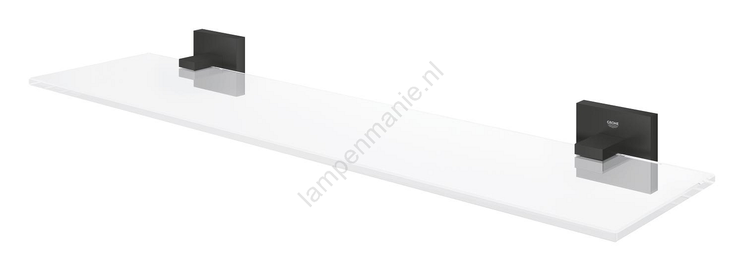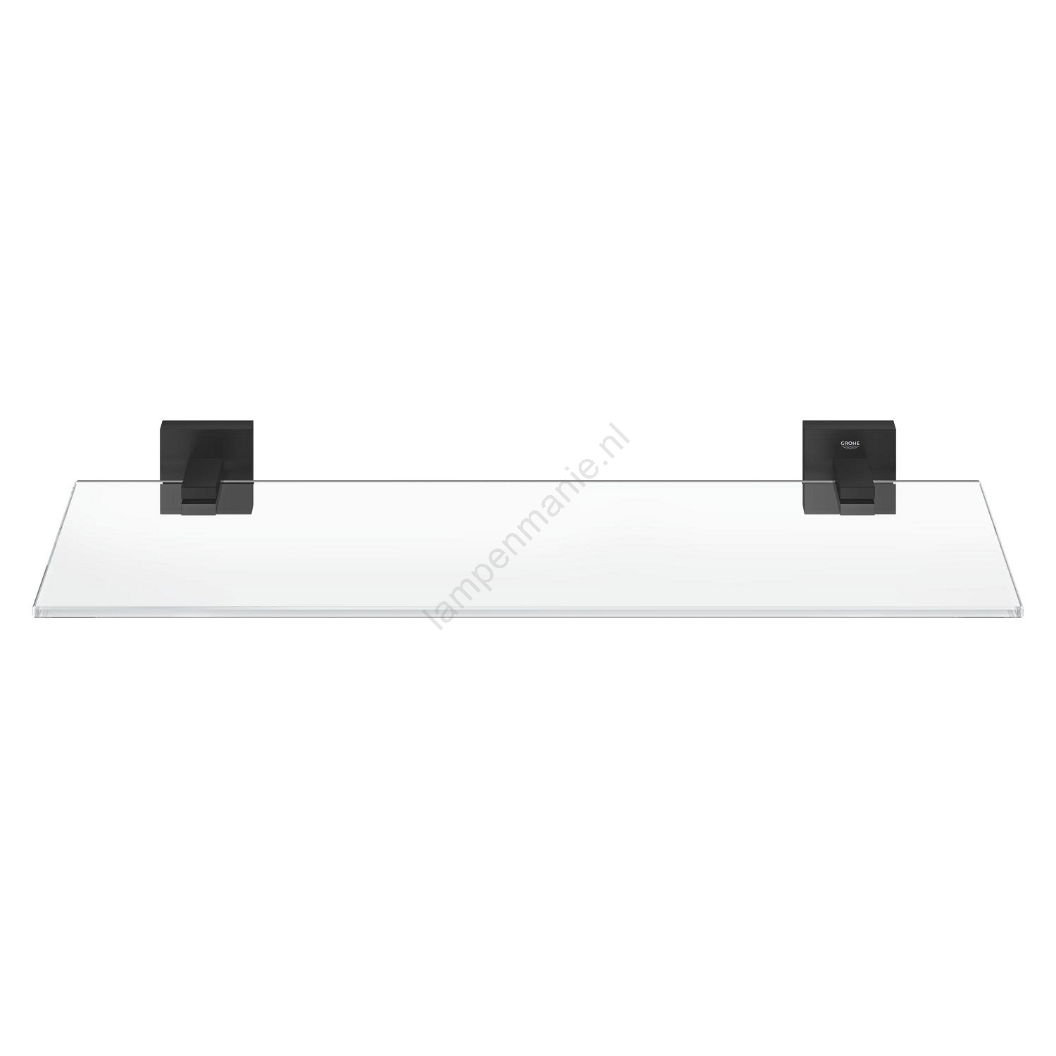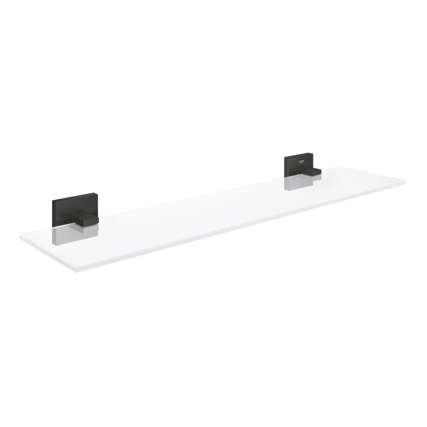 • Elegante glazen plank GROHE Start Cube met matzwarte houders.