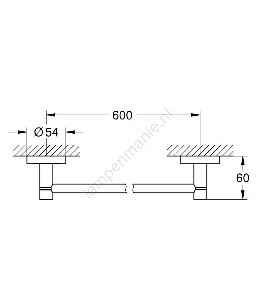 • Totale lengte 654 mm met een bruikbare lengte van 600 mm voor comfortabel ophangen van handdoeken.