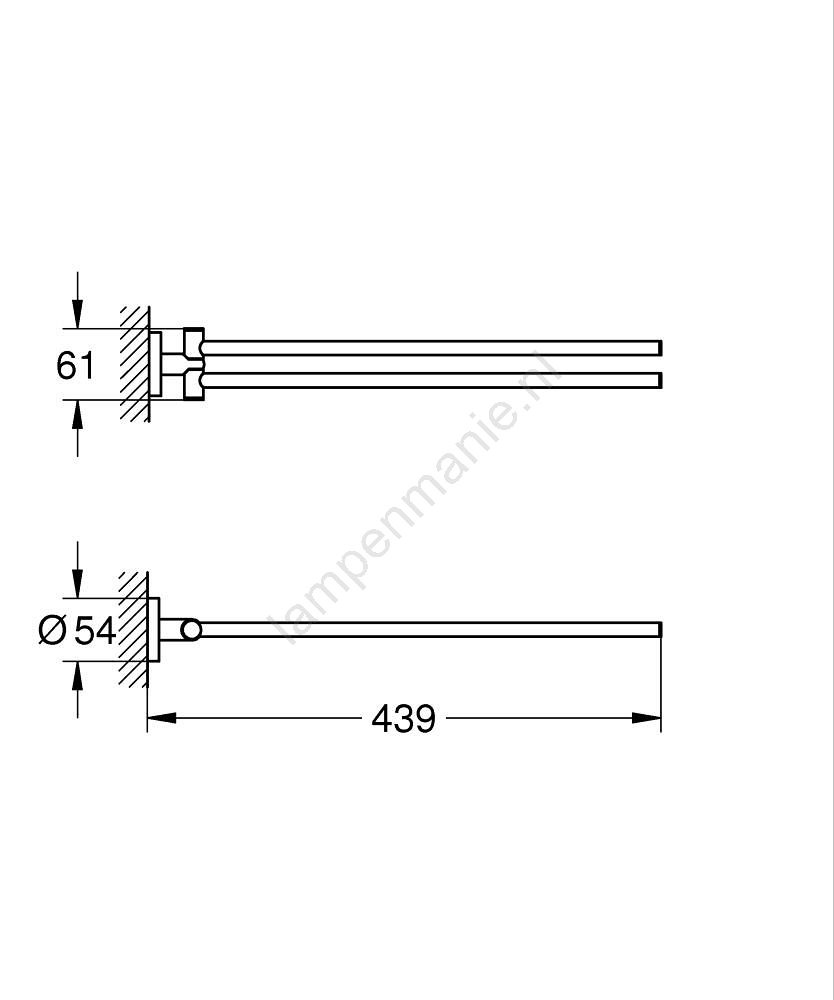 • De totale lengte van 439 mm biedt voldoende ruimte om handdoeken op te hangen.