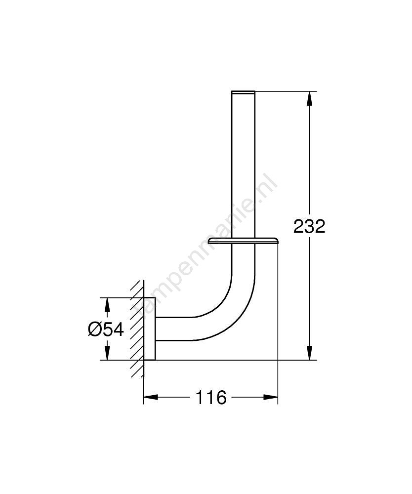 • Afmetingen: lengte 116 mm, breedte 54 mm, hoogte 232 mm.