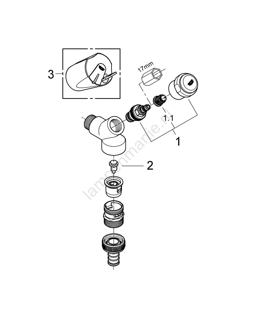 • Smeerkamer bovenstuk 1/2" voor een afsluitbare slangaansluiting.