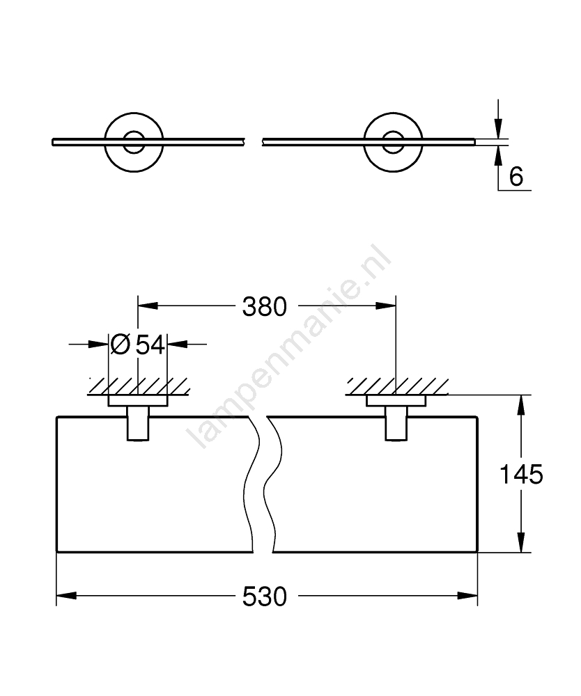 • Totale lengte 530 mm met een bruikbare lengte van 380 mm, zodat er voldoende ruimte is voor uw badkamerbenodigdheden.