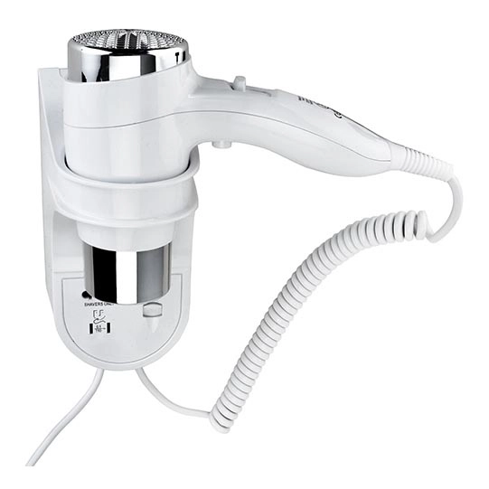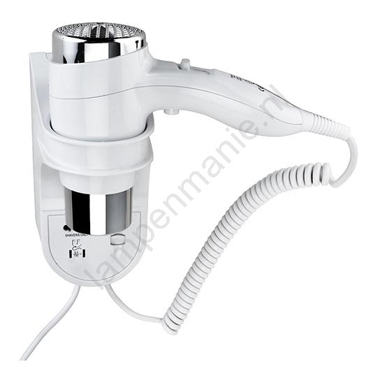 • Wandhaardroger met geïntegreerde houder voor ruimtebesparing in de badkamer.
