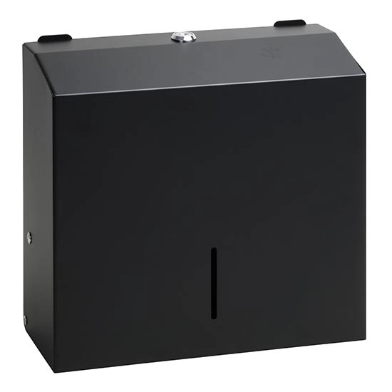 • Modern zwart dispenser voor papieren handdoekjes voor een elegante uitstraling van de badkamer.