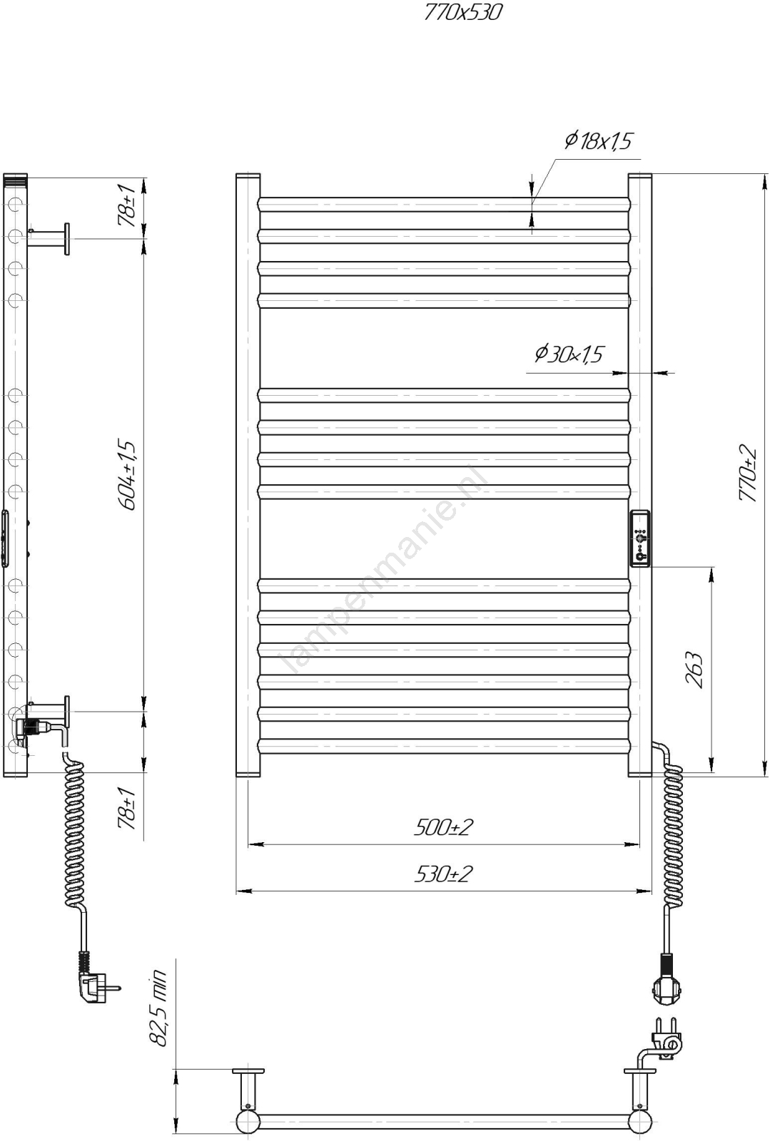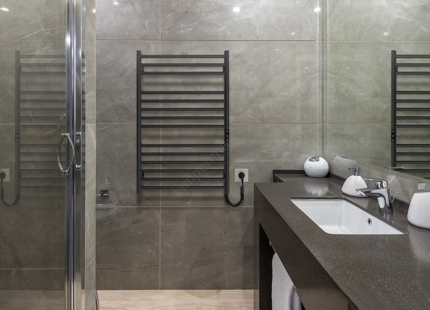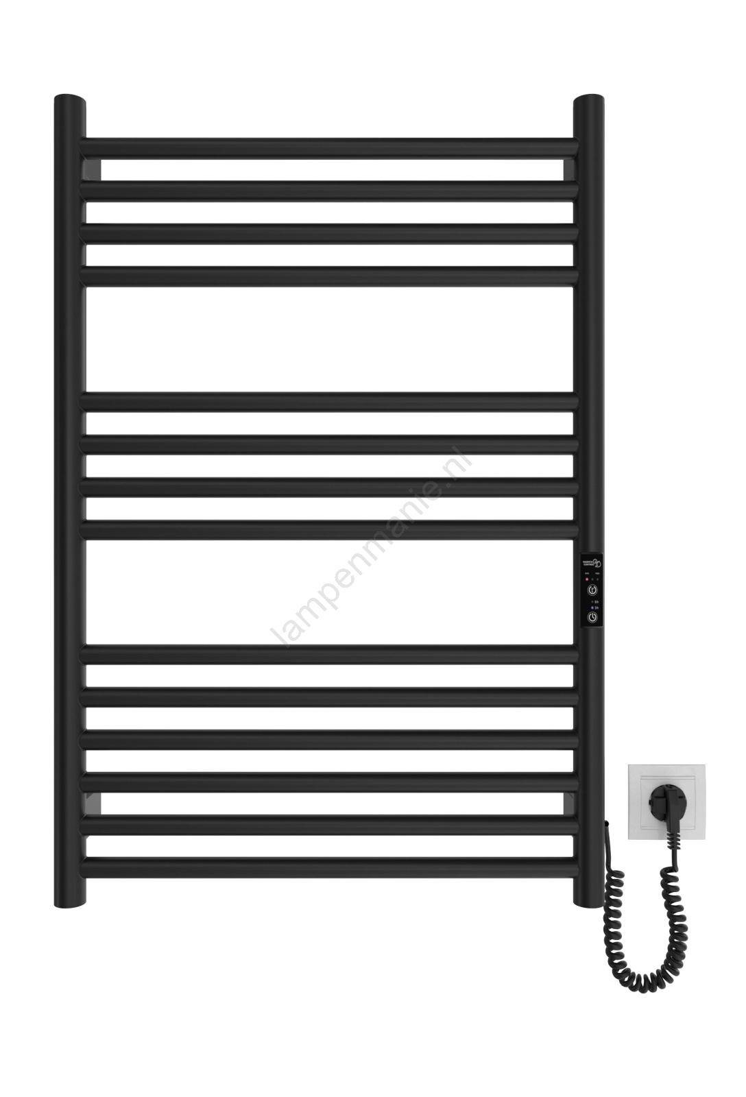 Handdoekradiator voor badkamer HF GREENWICH 170W/230V 77x53 cm, zwart, rechts, ronde buizen