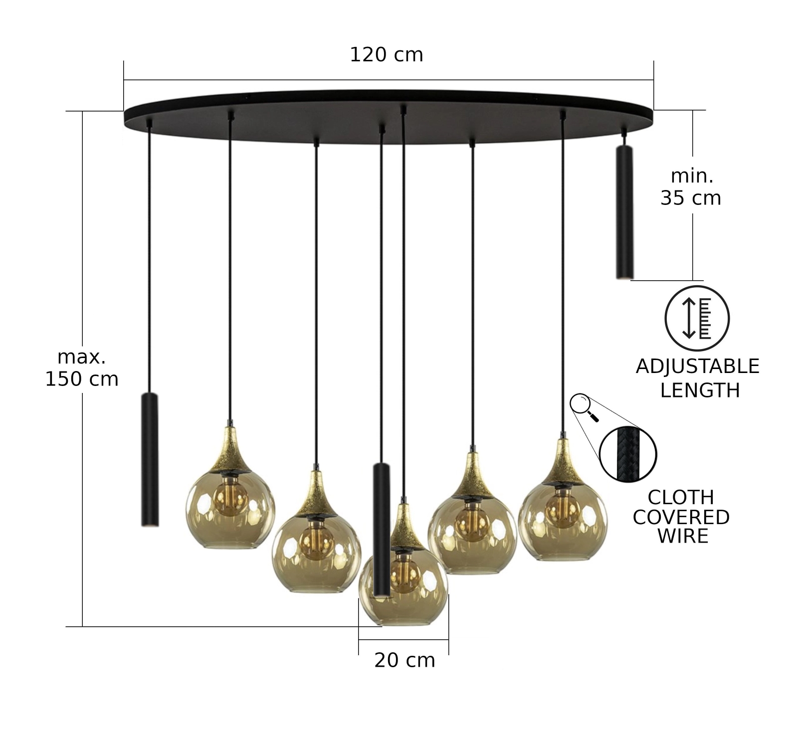 Hanglamp aan kabel CALYPSO 3xGU10/60W/230V + 5xE27/60W zwart/goud
