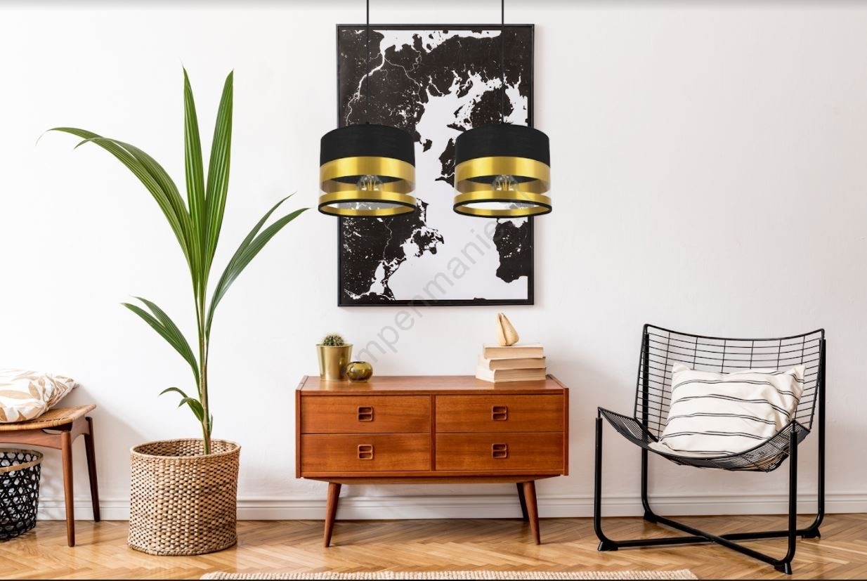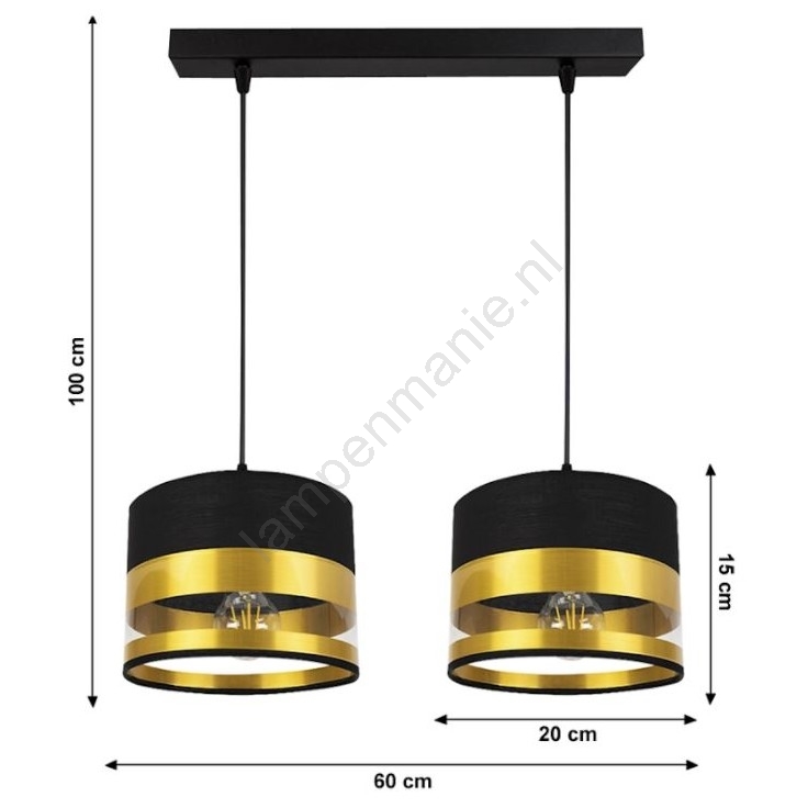 Hanglamp aan een koord MILO 2xE27/60W/230V goud/zwart kenmerkt een mooi en functioneel ontwerp.  Voor het licht is een lamp met E27 fitting geschikt. Hier kunt u andere lampen tegen voordelige prijzen kopen. U heeft een interessante aanwinst voor uw woning.