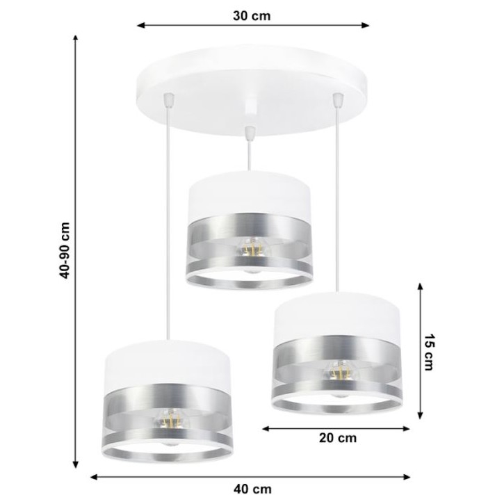 • Hanglamp aan een koord MILO 3xE27/60W/230V zilver
