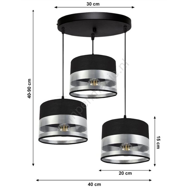 • Hanglamp aan een koord MILO 3xE27/60W/230V zilver/zwart