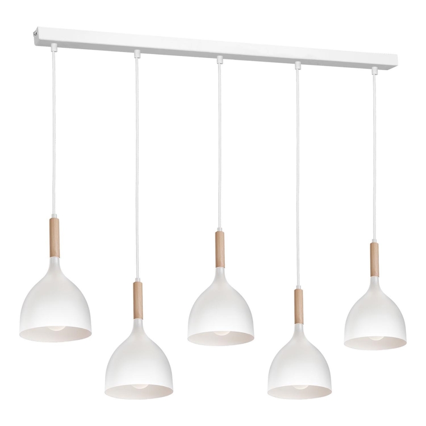 Hanglamp aan een koord NOAK 5xE27/60W/230V wit/hout