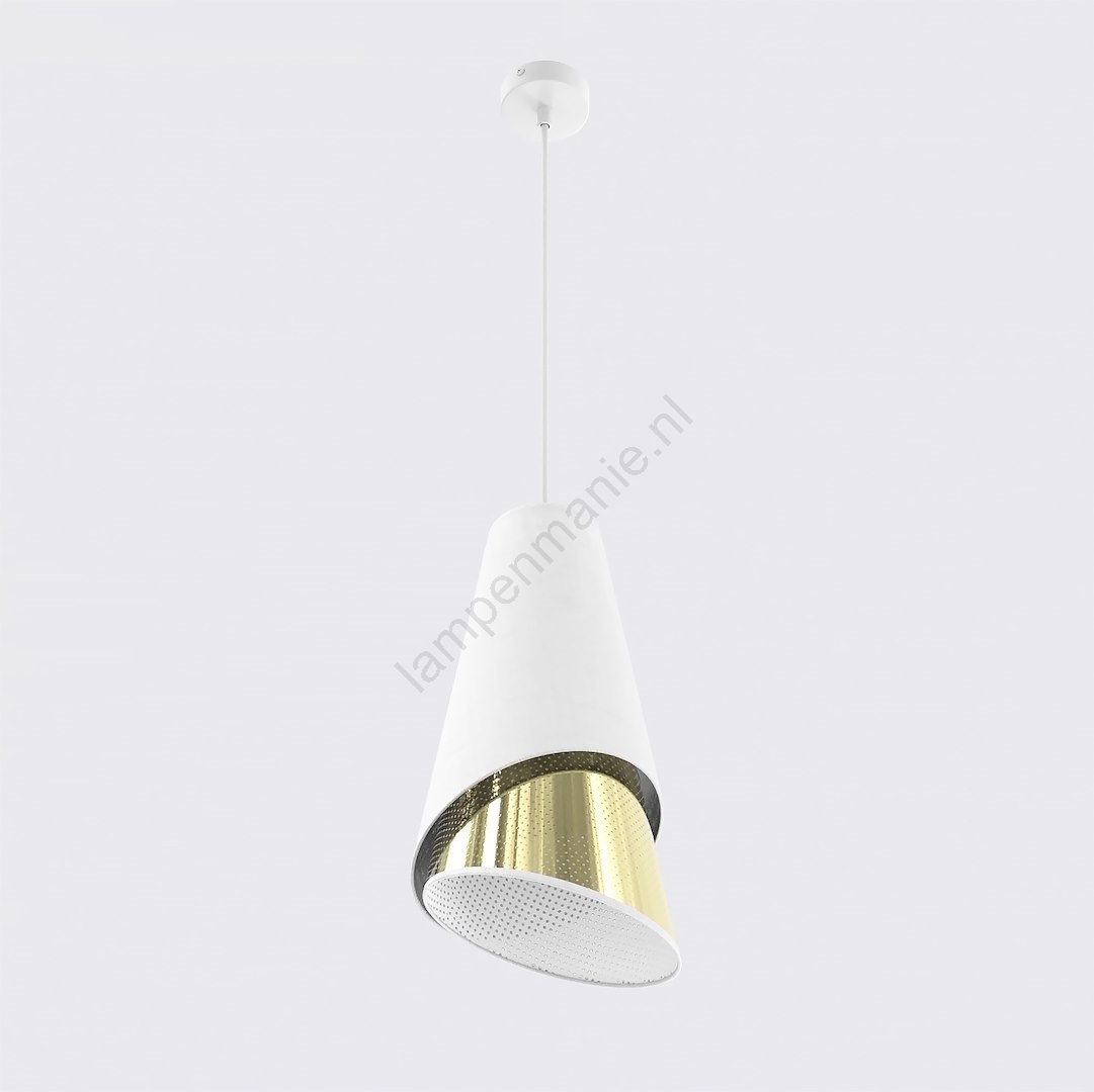 Hanglamp aan kabel MODA 1xE27/15W/230V wit/goud kenmerkt een mooi en functioneel ontwerp.  Voor het licht is een lamp met E27 fitting geschikt. Hier kunt u andere lampen tegen voordelige prijzen kopen. U heeft een interessante aanwinst voor uw woning.