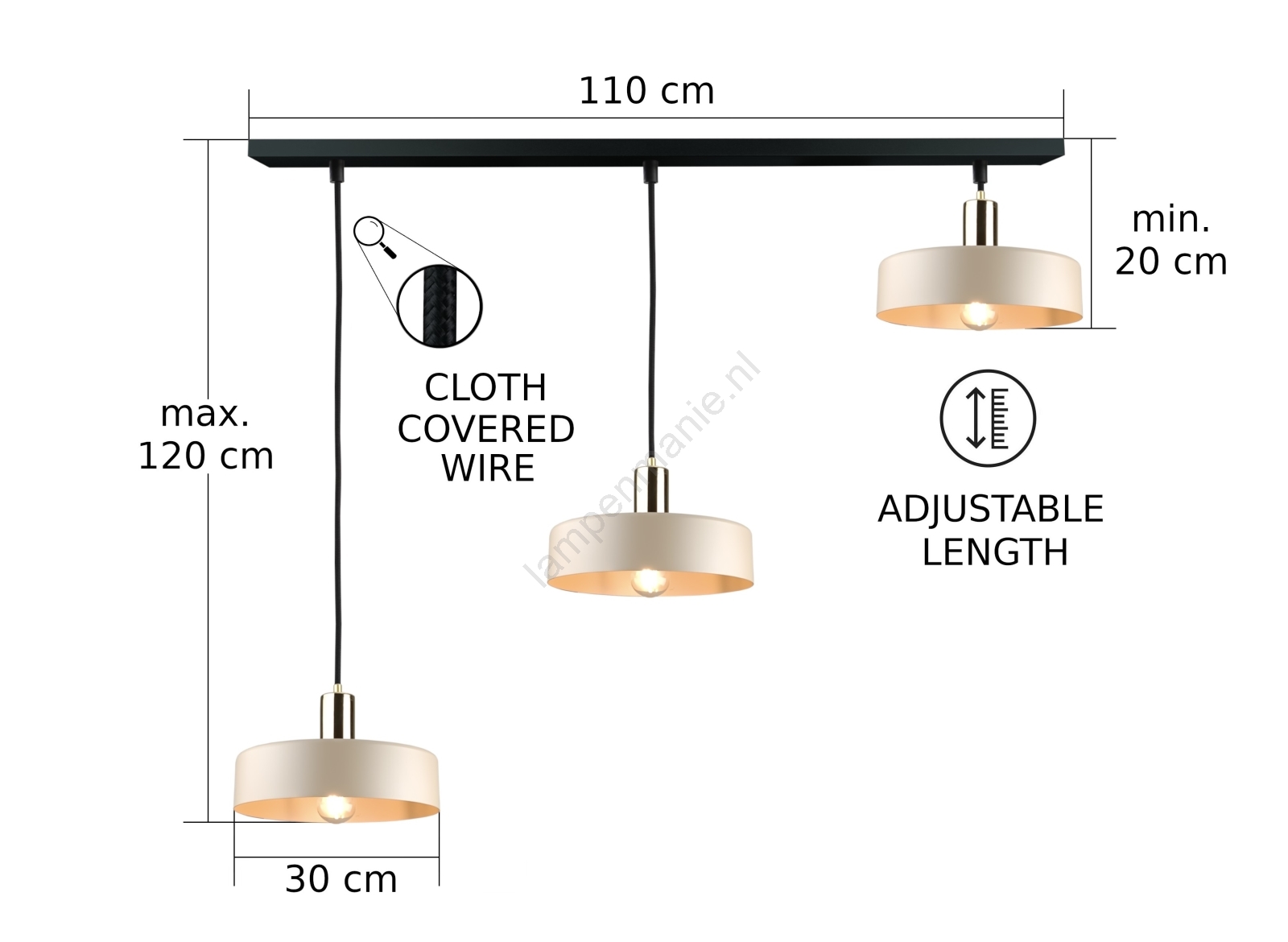 • Hanglamp aan snoer LATTE 3xE27/60W/230V beige/zwart/goud