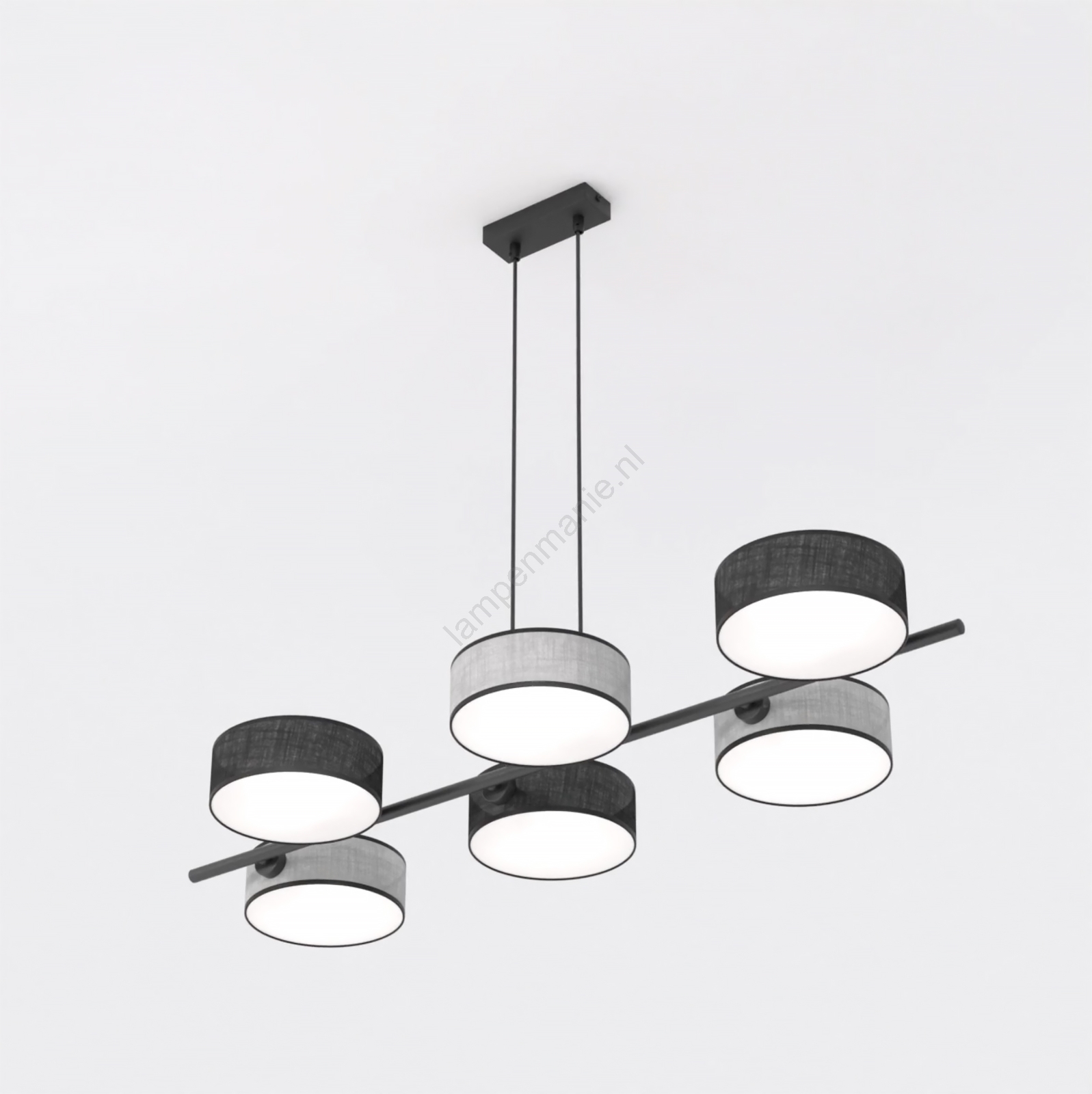 Hanglamp met kabel DRUMZ 6xE14/10W/230V zwart/grijs kenmerkt een mooi en functioneel ontwerp.  Voor het licht is een lamp met E14 fitting geschikt. Hier kunt u andere lampen tegen voordelige prijzen kopen. U heeft een interessante aanwinst voor uw woning.