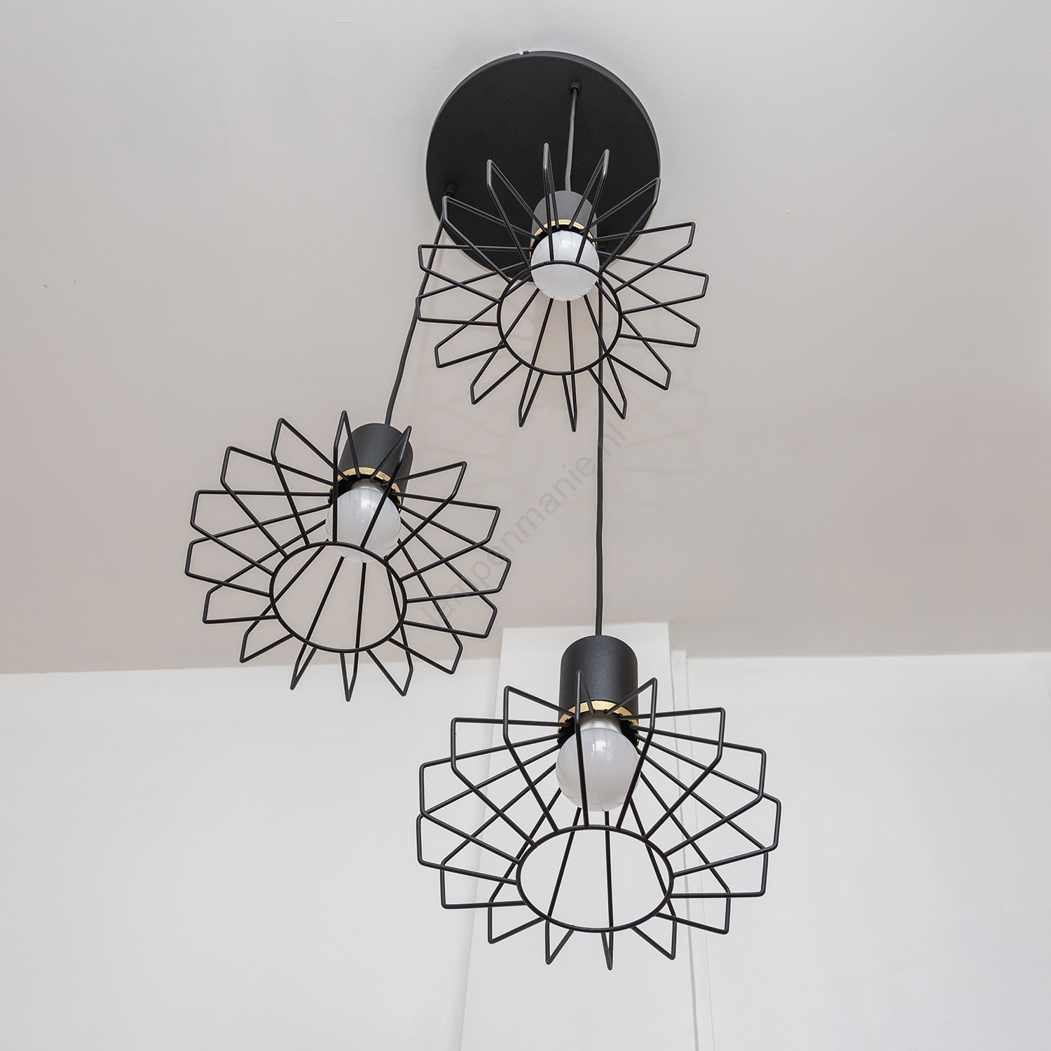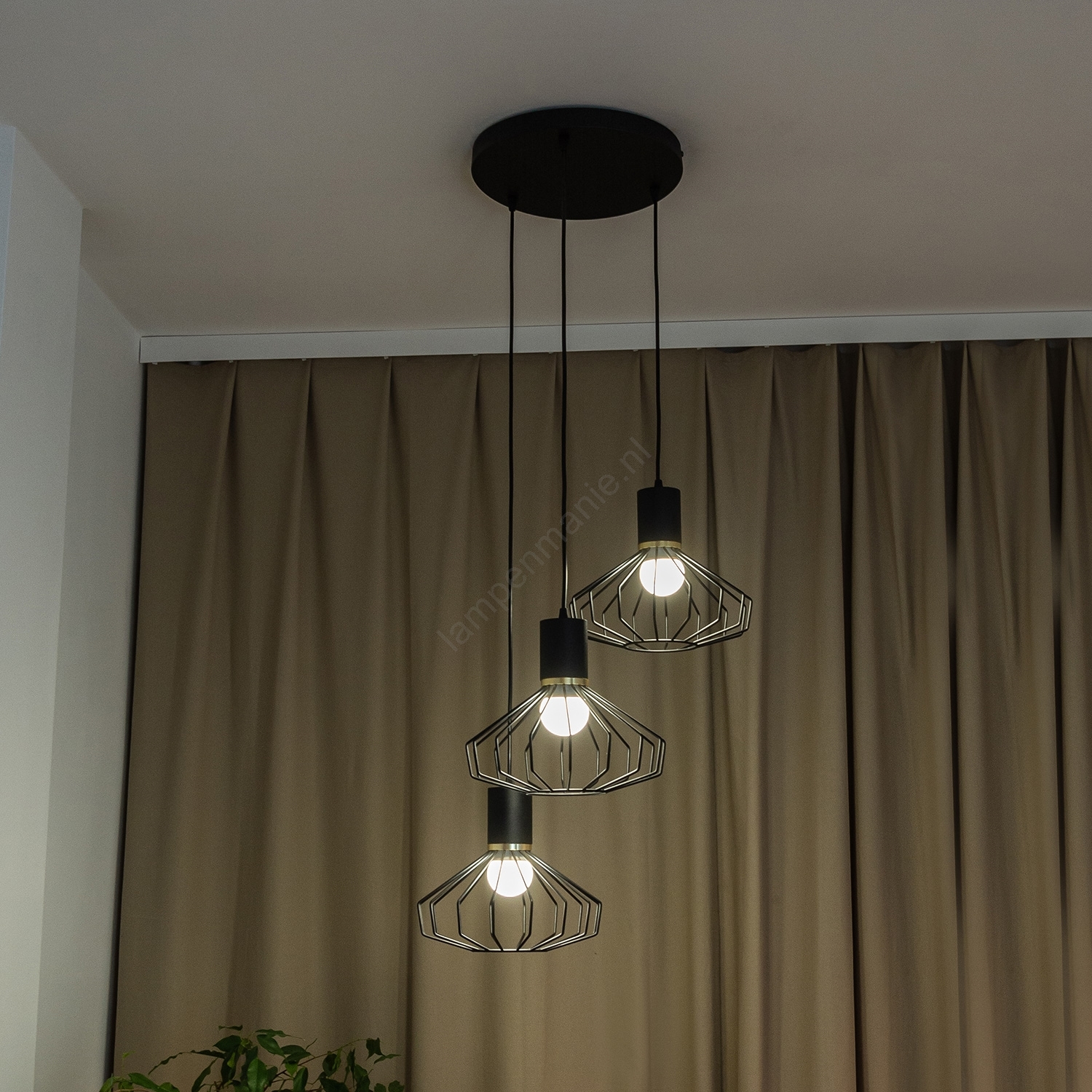 Hanglamp met kabel SOLANO 3xE27/15W/230V zwart/goud kenmerkt een mooi en functioneel ontwerp.  Voor het licht is een lamp met E27 fitting geschikt. Hier kunt u andere lampen tegen voordelige prijzen kopen. U heeft een interessante aanwinst voor uw woning.
