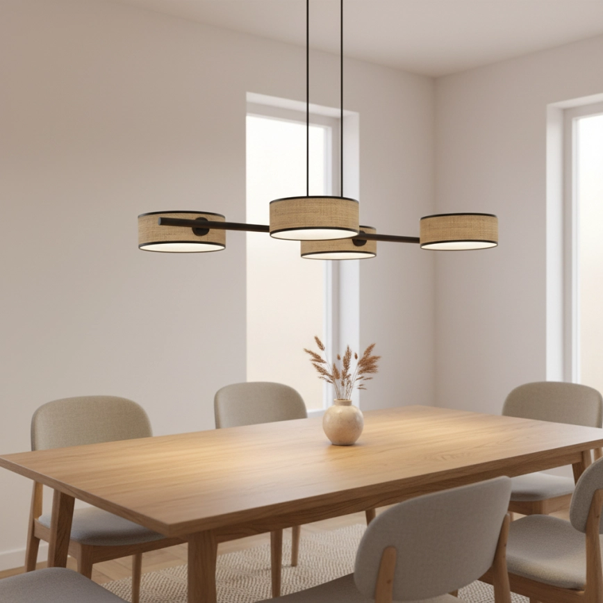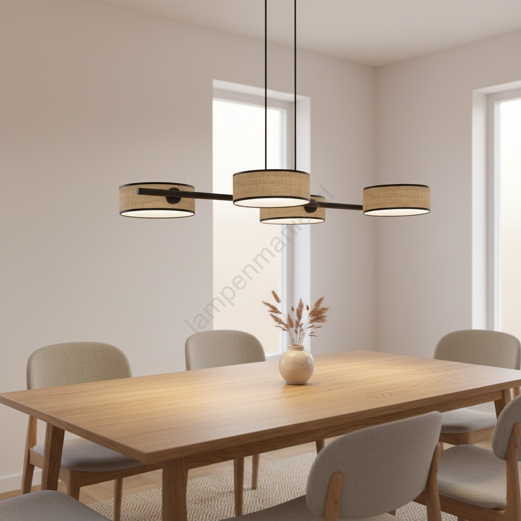 Hanglamp met snoer DRUMZ 4xE14/10W/230V beige kenmerkt een mooi en functioneel ontwerp.  Voor het licht is een lamp met E14 fitting geschikt. Hier kunt u andere lampen tegen voordelige prijzen kopen. U heeft een interessante aanwinst voor uw woning.