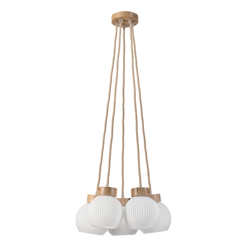 Hanglamp met snoer LOOMIS 5xE27/15W/230V 83 cm beige/eiken